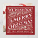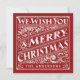 WE WISH YOU MERRY CHRISTMAS: Bright and cheerful whimsical SQUARE chalkboard style Christmas flat photo card with retro red and white typography, and fancy decorative swirls in art nouveau style. Personalise this decorative holiday photo greeting card with your family name and add your favourite holiday family picture. Contemporary, classic, modern and stylish way to send trendy happy winter holiday greetings to all your friends and loved ones with rustic and traditional charm.