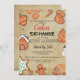 The cookie exchange invitation depicts a gingerbread guy, a gingerbread home, and a Christmas tree biscuit adorned with a gingerbread stocking."Christmas Cookie Swap" is written in huge beautiful calligraphy. There is enough of template material for you to explain your party concept.
