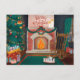 Vintage Christmas Fireplace Scene Holiday Postcard