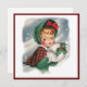 Vintage Christmas Girl Holding Holly Holiday Card.