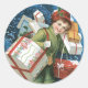 Vintage Christmas, Girl with Gifts in Winter Snow Classic Round Sticker