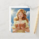 A young girl and her gifts, lit up like an angel. Vintage theme