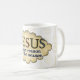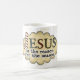 Vintage Christmas Jesus is the Reason Coffee Cup Mug background is tree ornaments pattern.
