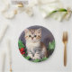 Paper Plates featuring a vintage Christmas kitten and holly! An adorable kitty with green eyes poses with boughs of holly. A merry gift for the Christmas season and cat lovers!