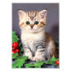 Vintage Christmas Kitten and Holly Photo Print