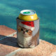 Vintage Christmas Kitten in Santa Hat Can Cooler
