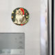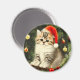 Magnet featuring a vintage Christmas kitten! This adorable kitty wears a Santa hat and sits in a Christmas tree decorated with ornaments. A wonderful gift for the Christmas season and cat lovers!