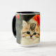 Coffee Mug featuring a vintage Christmas kitten! This adorable kitty wears a Santa hat and sits in a Christmas tree decorated with ornaments. A wonderful gift for the Christmas season and cat lovers!