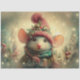 Vintage Christmas Mouse In Hat Decoupage Tissue Paper
