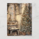 Romantic illustration drawing from an 18th century antique vintage office with a decorated Christmas tree