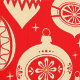 A festive seamless pattern with retro-styled vintage Christmas ornaments in gold and red hues, conveying a nostalgic holiday feel.
