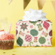 Vintage Christmas ornaments scattered against a creamy coloured background.