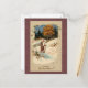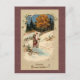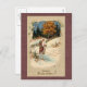 This beautiful vintage postcard features an elderly man holding his walking stick and walking through the snow near the wilderness.