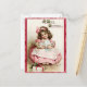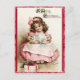 This is a delightful vintage postcard of a sweet little girl in a pink dress. She has a pink bow in her hair and is cradling her pretty doll in her arms. In front of her on the floor is a wrapped Christmas gift. The postcard read: "A Merry Christmas". A gorgeous old Christmas postcard!