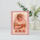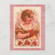 This adorable vintage postcard features a young girl holding pretty Christmas flowers. The vintage image is displayed against an elegant pink Christmas ornamental background.