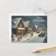 Celebrate the magic of Christmas with this charming vintage postcard! Featuring a snow-covered old village decorated for the holidays, a cheerful snowman standing next to a cozy house, children playing in the snow, a playful puppy, and classic vintage cars along the streets. The illustration is in a whimsical, hand-painted style, creating a cozy and nostalgic holiday atmosphere. Text on the front reads “Merry Christmas”, making it perfect for sending festive wishes or as a collectible holiday keepsake.