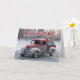 A classic red and silver vintage truck drives through a snowy winter landscape, loaded with brightly wrapped presents in the truck bed. The frosted trees in the background, paired with the festive "Merry Christmas" message in bold letters, create a nostalgic holiday scene that captures the warmth and joy of the Christmas season. This card brings a blend of old-fashioned charm and the excitement of gift-giving, perfect for spreading holiday cheer!
