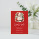 Save the date postcard with a cute vintage style watercolor image. Santa Claus in his red suit with jolly cheeks and a smiling face. Surrounded by pine and holly.