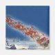 Vintage Christmas, Santa Flying Sleigh w Reindeer Magnet