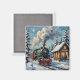 Vintage Christmas Steam Train at Snowy Station Magnet