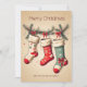 Vintage Christmas Stockings on Pine Leaves Holiday Card