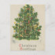 This is a vintage postcard illustration of a Christmas Tree with text greetings at the bottom.