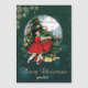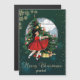 Vintage Christmas tree, little girl, and snowflakes on the green background make this a perfect Christmas or holiday greeting card for friends and family.
