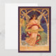 Vintage illustration religious Victorian Christmas holiday image featuring a floating angel reading the Bible. This angelic lady has beautiful wings, long dark hair, and a flowing robe; she is under a decorative arch while reading a book.