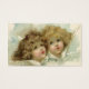 Vintage illustration religious Christmas holiday image featuring two beautiful Victorian angels. These angelic cherubs are in a fluffy white cloud looking up towards heaven.