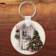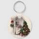 Originally a black and white drawing from the early 1900s, this vintage Christmas window scene with Christmas tree and lights makes a great holiday keychain.