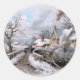 Vintage Christmas Winter Scene Classic Round Sticker