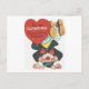 Vintage Circus Clown Valentine Holiday Postcard