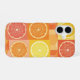 Retro pattern featuring stylized citrus fruits with soft colors and geometric shapes.