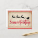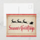 Send Seasons Greetings to your friends and family this year with this vintage, classic typography Xmas postcard featuring a silhouette illustration of Santa in his sleigh with his reindeer!