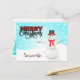 Vintage classic snowman Christmas holiday postcard , personalised name Xmas Card.