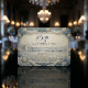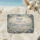 Set a tone of timeless romance for your classic chapel event with these dusty blue and cream details, featuring elegant scenery and vintage charm.This stationery design showcases a digital 3D relief style that creates the striking visual illusion of deeply carved stonework framed by draped fabric garlands. The composition anchors on a scenic landscape featuring a small classical building, a cobblestone path scattered with fallen petals, and rolling hills, all encased within an ornate border of roses and leaves. The typography utilizes a balanced hierarchy of elegant navy blue modern calligraphy paired with clean sans-serif capitals against a soft cream background, mimicking dramatic studio lighting and shadows to enhance the sculptural depth.This is a flat printed image with a faux embossed plaster effect, not actual raised material.