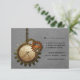 This unique Vintage Clock Wedding Response Card in light grey features antique steampunk clocks and gears hanging by a metal bead chain. The background has a textured paper and mesh overlay which adds a distressed and grungy feel to the design. This quirky and offbeat wedding RSVP card would be perfect for a steampunk inspired wedding. Easy to customise, simply add your wedding details in the spaces provided. Click on the "Customise It" button to find additional personalisation options.