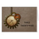This unique Vintage Clock Table Number Card in mocha brown features antique steampunk clocks and gears hanging by a metal bead chain. The background has a textured paper and mesh overlay which adds a distressed and grungy feel to the design. This quirky and offbeat wedding table number card would be perfect for a steampunk inspired wedding. Easy to customize, simply add the appropriate table number(s) in the space provided. Click on the "Customize It" button to find additional personalization options.