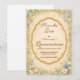 A romantic coastal garden design featuring delicate wildflowers, seashells, starfish, and soft seaside greenery surrounding an elegant ornate frame. The watercolor florals and warm antique parchment background create a timeless aesthetic inspired by vintage botanical prints and coastal charm. Perfect for an elegant celebration with a refined seaside atmosphere.