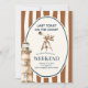 A serene and nautical-inspired design featuring a watercolor sailboat set against abstract wavy stripes. This coastal palette of soft blues and neutrals brings an ocean breeze to life, perfect for seaside celebrations or a relaxing bachelorette getaway.