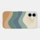 Retro illustration depicting gentle coastal waves in a softened oceanic palette inspired by the 70s.