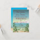 A Vintage coconut drink Wedding invite with a parrot, flowers and a tropical landscape.