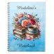 A really pretty ai watercolor illustration of a a stack of vintage books, a cup of tea or coffee and pretty flowers personalised notebook.
