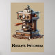 Vintage coffee machine with a fancy top and coffee beans scattered around the bottom. There is a message at the bottom that should be changed or deleted (currently says "Kelly's Kitchen"). This exclusive design can only be found in this store. The image shown is 24 x 36", unframed, with high quality paper, but there are many design options from which to choose. They include paper quality, poster size, various framing options and prices. You can also download the image instead for a much lower price.