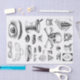 a variety of vintage Chemistry, apothecary, dental, dentist, doctor, eye glass makers, medicine, health and illness icons. All black etchings on white.