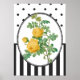 Work from Redouté, Pierre Joseph "Nature Illustrated: Flowers, Plants, and Trees, 1550-1900". Yellow roses and green leaves. Vintage Botanical Print. White and black polka dots, as well as black and white stripes pattern on the background.