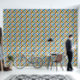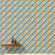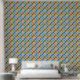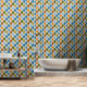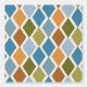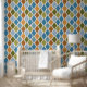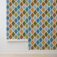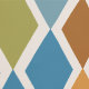 This vintage wallpaper features a diamond pattern of different cold colours. It has a vintage colour scheme.