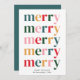 The front of the card proudly showcases the word "Merry" repeated 5 times in bold, eye-catching letters. This repetition not only adds a modern twist but also emphasises the joy and merriment of the holiday season.