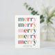 On the front of the postcard, you'll find the word "Merry" repeated three times, emphasising the joy and merriment of the holiday season.