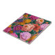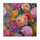 A bold and elegant pattern featuring vibrant, colourful peonies set against a pink background. This ceramic tile evokes a vintage and rustic aesthetic, with detailed floral illustrations that pop with timeless charm. The moody backdrop enhances the romantic, antique feel—perfect for seasonal style, floral lovers, or vintage-inspired themes.